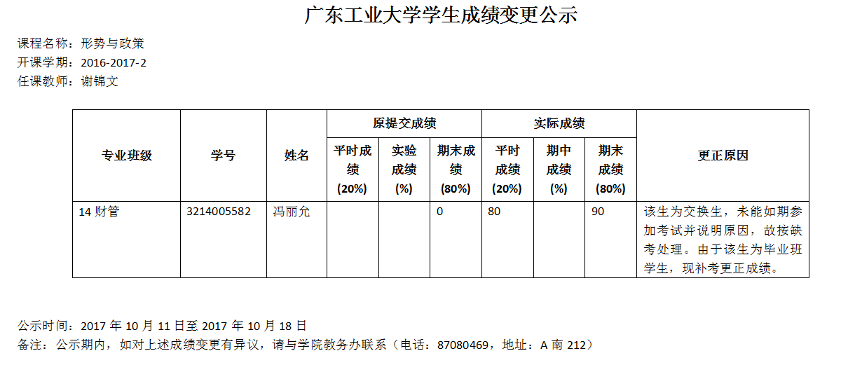 上一条:管理学院2016-2017学年度考核优秀等次、“双优”人选推荐结果公示 下一条:广东工业大学学生成绩变更公示
