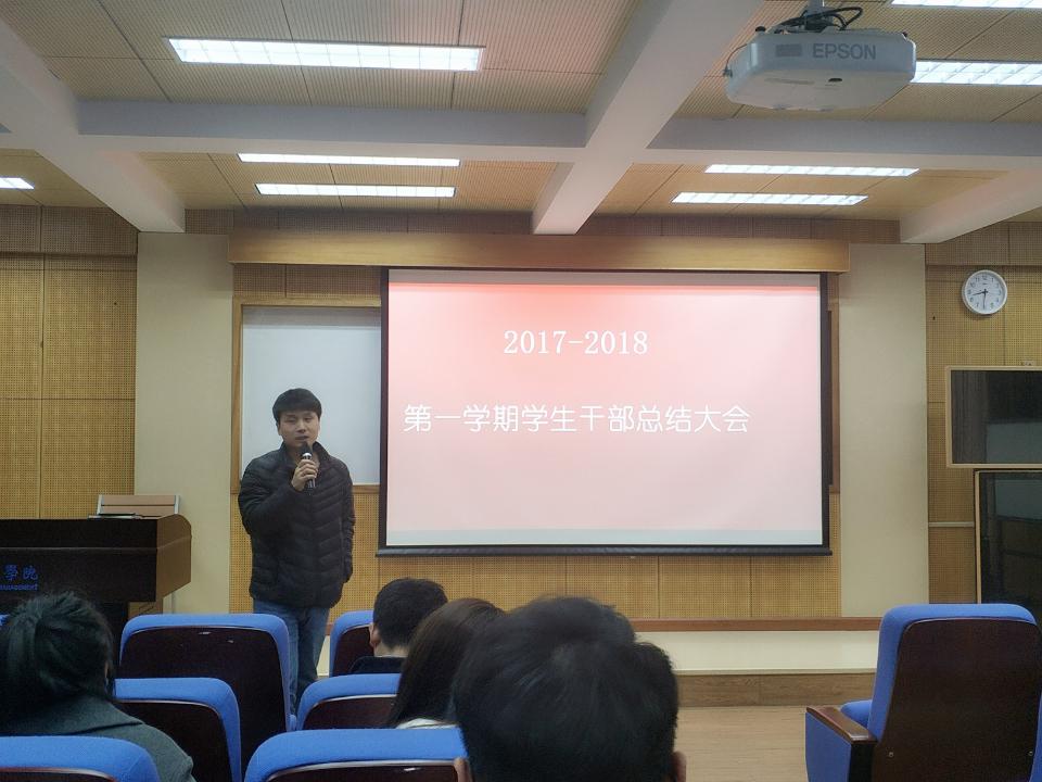 为了深入了解2017-2018学年度第一学期研究生会及各班班委的工作情况、总结本学期的学习工作、提出下学期的工作重点,365体育投注平台于2018年1月15日晚上7点在学院A南217举行了研究生干部第一学期期末总结大会。会议由管理学院研究生辅导员田艺广老师主持,研究生会主席团、各部门部长、学生辅导员以及15、16和17级各班委参加了本次会议。