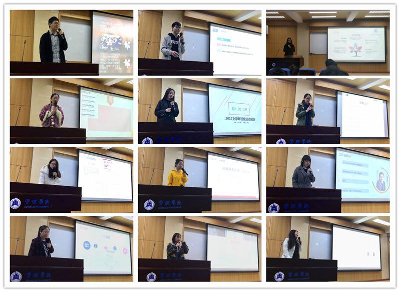 接着,各班班委进行了本学期工作总结汇报。2015级各班班长主要从就业及党建工作情况展开,给师弟师妹们传授了很多实用的工作经验。2016级各班班长则侧重奖学金评定、研究生开题答辩等方面来介绍本学期工作。2017级各班班长主要从学习与生活两方面展开总结,他们表示,学院的课程学习与学术讲座很大程度上增强了班级的学术氛围,而学院迎新、男女生节活动则增加了班级凝聚力,使班集体更加和谐友爱。在各班班委的工作总结中,均强调了对班内同学“心理健康动态”的重视。