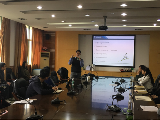 应我校管理学院邀请,2017年11月21日上午10点,宁波诺丁汉大学商学院信息系统学张毓隆教授与管理学院师生分享了一场以“发表国际SCI/SSCI期刊论文的经验交流”为主题的学术报告会。本次报告会由杜松华教授主持,于管理学院第二会议室举行。