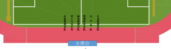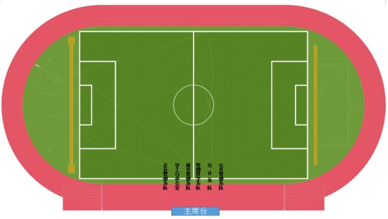 二、运动会地点:广东工业大学龙洞校区田径场,开幕式各系队站位图(图示1)