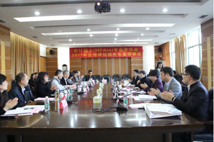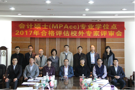 2017年12月3日,365体育投注平台会计硕士(MPAcc)专业学位点合格评估校外专家评审会在管理学院二楼会议室召开。本次校外评审专家组由7人组成,其中特邀全国会计硕士专业学位指导委员会委员徐玉德教授担任专家组组长,其他6位专家组成员均来自国内知名高校或企业(南开大学、厦门大学、中南财经政法大学、重庆理工大学、中交建股份有限公司、金光集团)。我校张光宇副校长、财务处邓彦处长、研究生院刘贻新副院长、管理学院张德鹏执行院长、后院副院长、黄蓉副院长、惠青山副院长、韩小花院长助理、MPAcc中心执行主任许慧博士以及会计系骨干教师30多人参加了评估会议。
